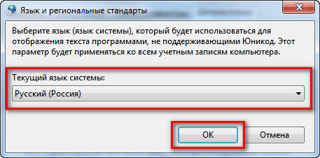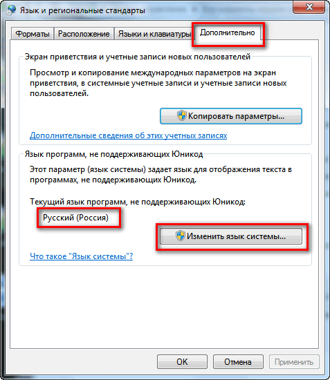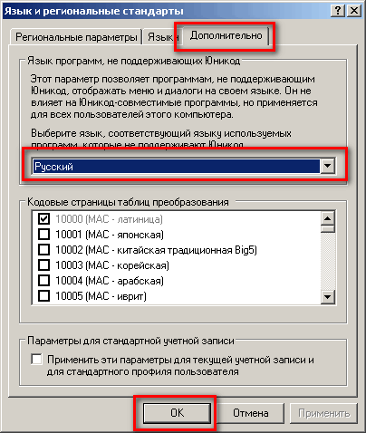 5) на вкладке «Дополнительно» выберите язык «Русский», нажмите ОК: